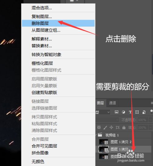 右键点击需要剪裁的图层,选择删除图层,在提醒框里点击确定