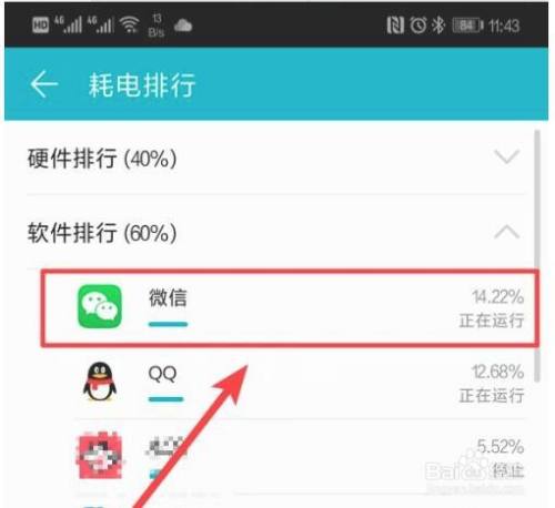 看到硬件排行和软件排行的耗电环境,我们选择耗电严重的应用点击进入