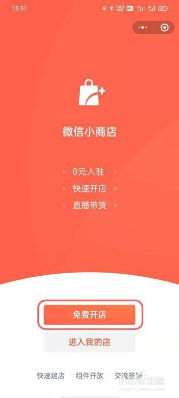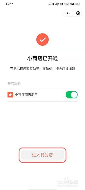无论选择的是什么类型,城市直接进入小商铺开通页面,点击【进入我的店】即可;