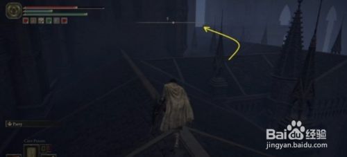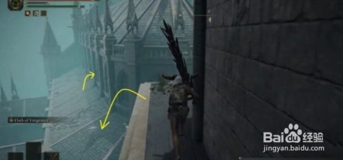 越过雕栏跳下去,然后往前走,在绝顶处左拐。