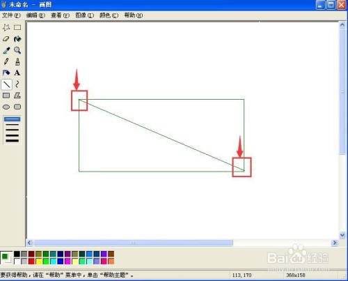 点击直线东西,从长方形的一个极点出发,画出一条直线,终点与对角极点重合;