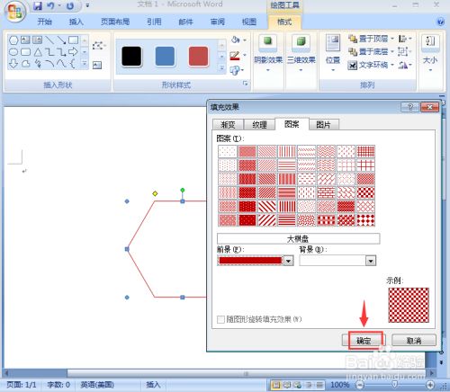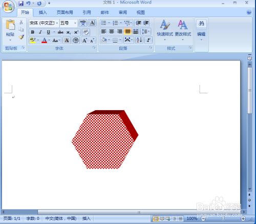 我们就在word中给五边形添加上了红色大棋盘图案和三维结果。
