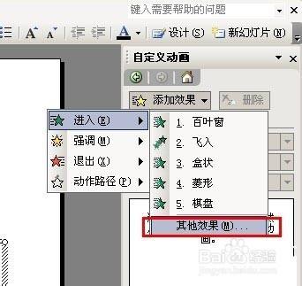 选择【幻灯片放映→自界说动画】号令,