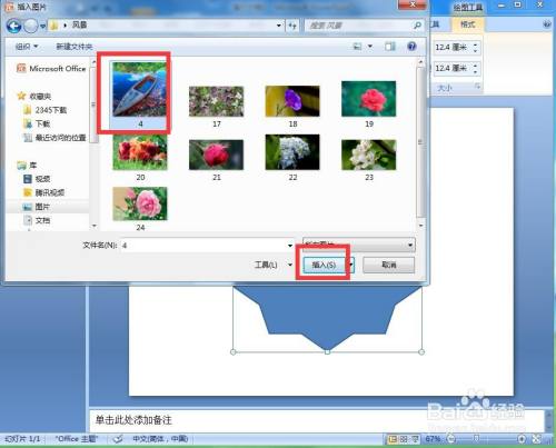 选中一张风光图片,按插入;