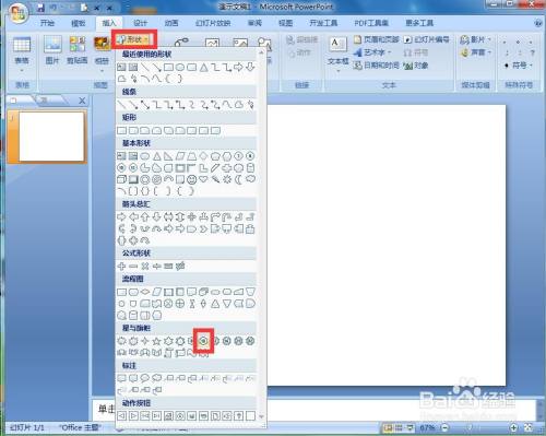 点击插入菜单,选择外形东西中的十角星;