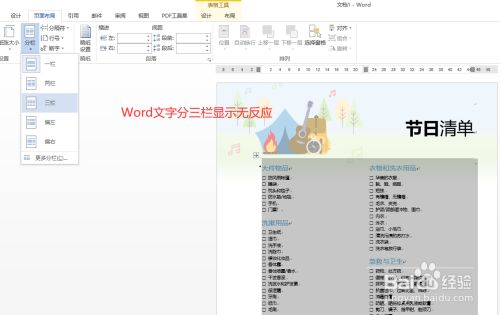 首先,我们在Word文档中输入响应的文字内容之后,选中而且点击分栏下拉列表。