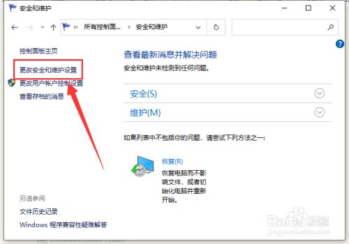 点击界面左侧的“更改平安和维护设置”。
