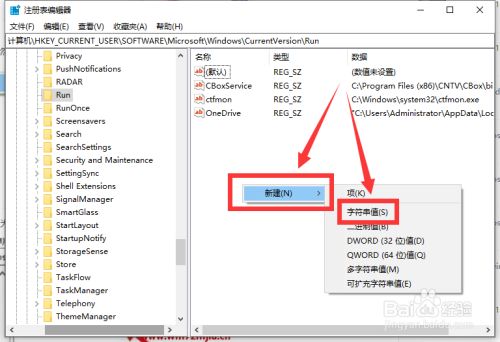 在右侧的空白位置点击右键,然后依次点击“新建/字符串值”菜单项。