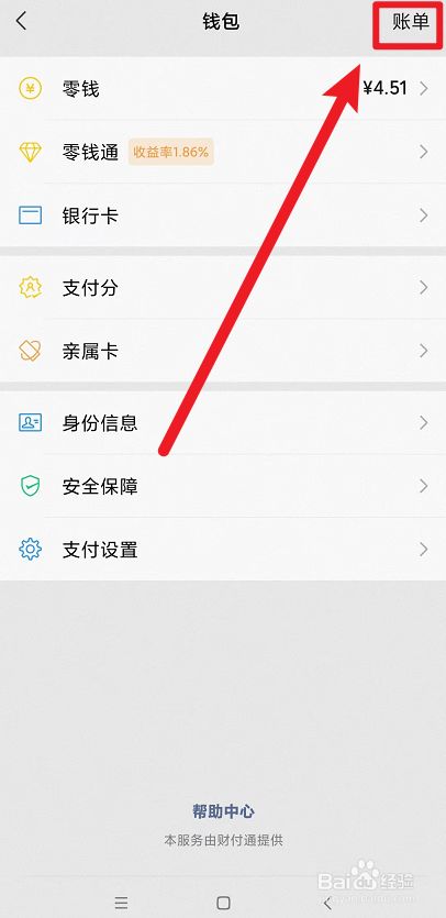 选择右上角的账单。