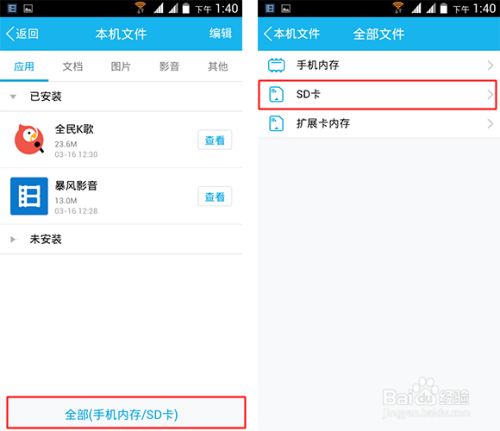 点击最下方的【 全数( 手机内存卡/SD卡 ) 】选择【 SD卡 】