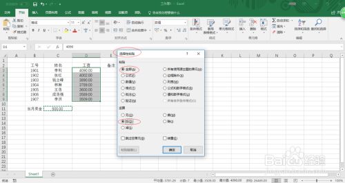 鼠标右击工资单位格区域,弹出菜单中选择"选择性粘贴"项