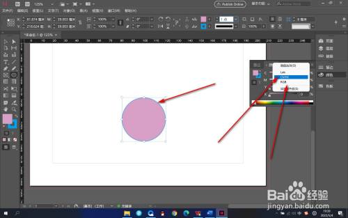 4.我们也可以打开颜色面板,当前显示的是CMYK颜色,我们可以选择RGB或者是LAB颜色。