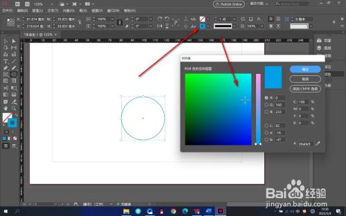 3.然后双击上方的填充色,在拾色器中可以选择填充的颜色。