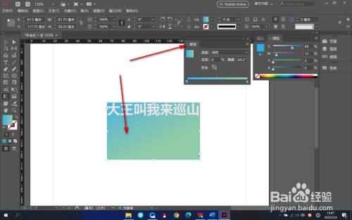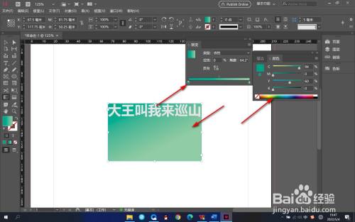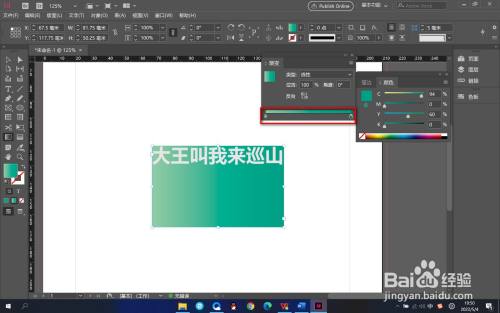4.点击渐变的一个色标,选中它,然后鼠标点击颜色面板中的颜色,这个时辰外形中的渐变色就会发生改变。