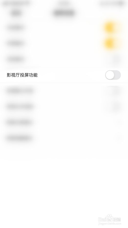 “影视厅投屏功能”后面的圆点变为黄色即暗示开启同娱影视厅投屏功能当作功