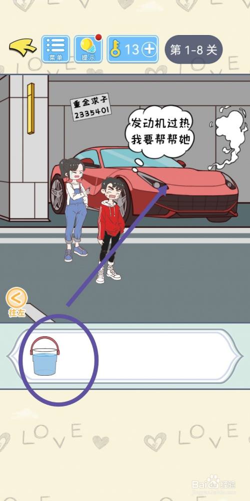 封闭汽车前盖后,再用【水桶】浇水降温,游戏就过关了。