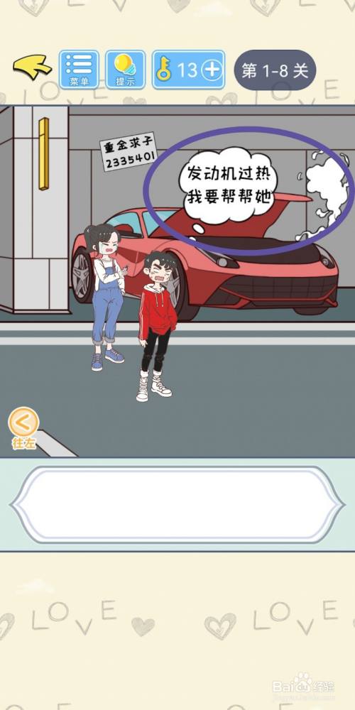 游戏起头,女生的汽车因为策动机过热无法启动,需要给策动机降温。
