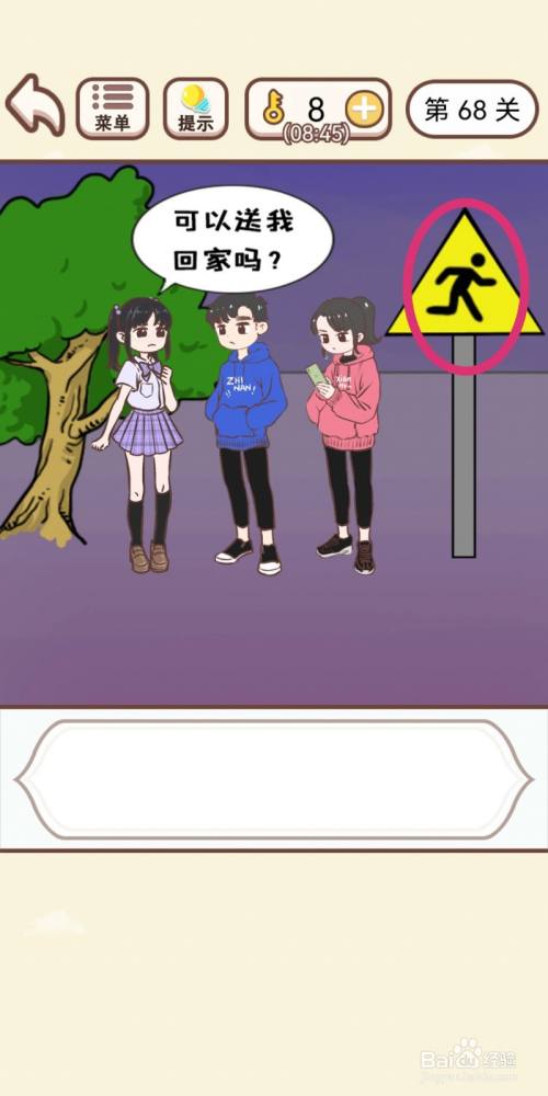 点击右侧的黄色警示牌,获得警示牌上面的【小人】。