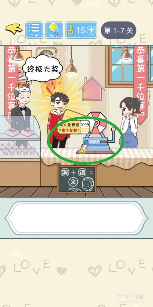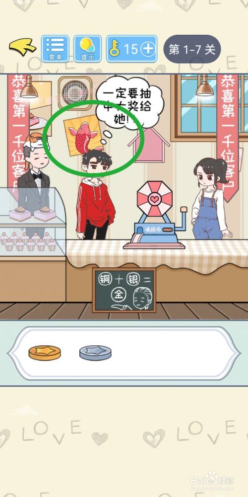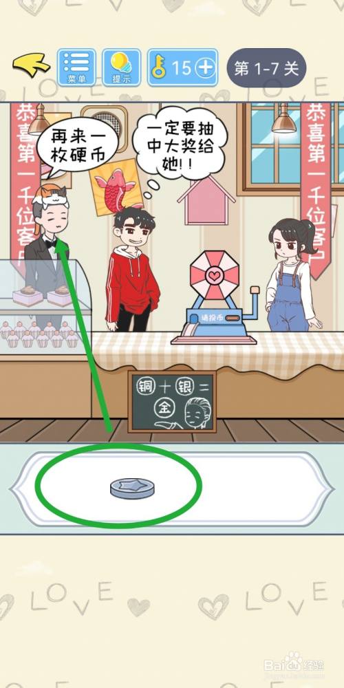点击获得办事员拿出的【金币】,拖入投币机里。