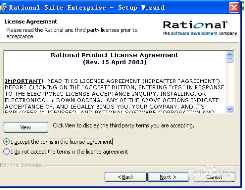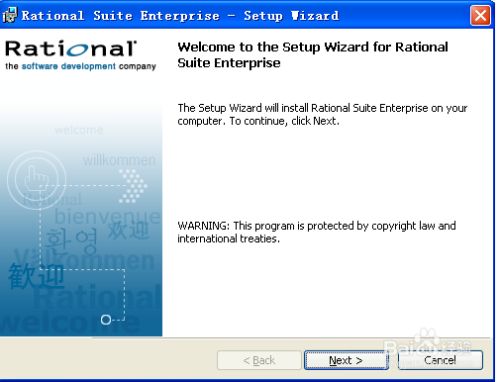 1.Rational suite Enterprise 2003压缩文件--setup-下一步--rational setup wixard对话框中选择Reational Suite Enterprise--下一步。