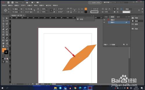 3.然后鼠标拖拽外形的时辰,它就会呈现这种横标的目的的变形。