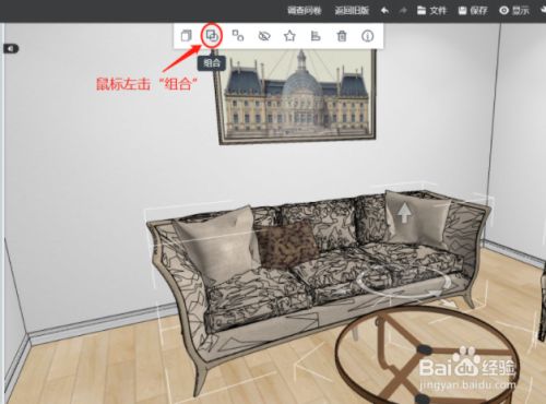 鼠标左击上方的“组合”(注:也可按快捷键Ctrl+G进行组合)。