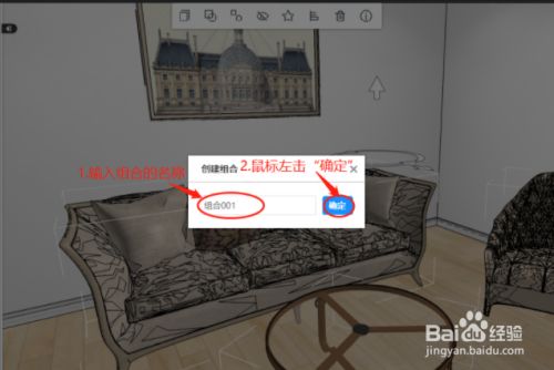 输入组合的名称后鼠标左击“确定”。