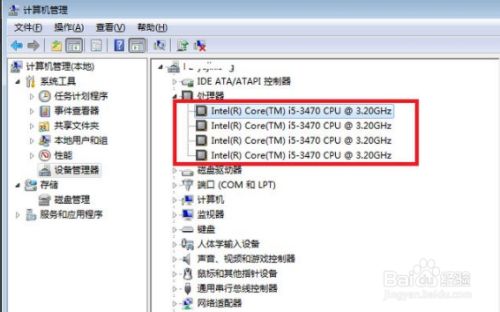 到大要如图所示的计较机办理界面后,切换到设备办理器选项卡,就可以在右侧查看当前CPU的焦点数。