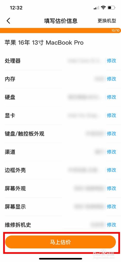 填写笔记本电脑的设置装备摆设清单,再点击底部的【顿时估价】。