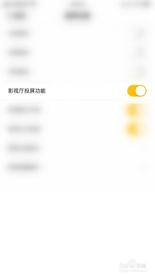 通用设置界面点击“影视厅投屏功能”后面的圆点