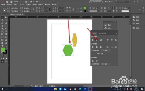 1.首先我们选中外形,将这个外形在页面中进行居中对齐。