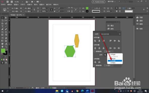 - 点击对齐的下拉按钮,在弹出的下拉菜单中点击对齐页面选项。