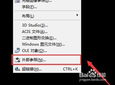 然后在弹出的选项中,点击“外部参照”。