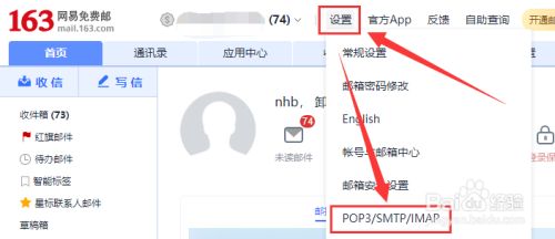 登录网易邮箱网页版,点击上方的“设置”,选择“POP/SMTP/IMAP”。