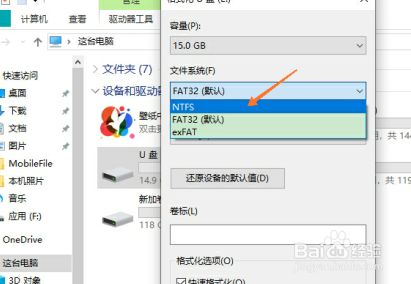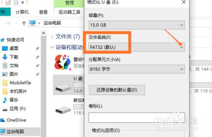 点击格局化选项,打开格局化窗口中,看到当前的文件系统为FAT32。