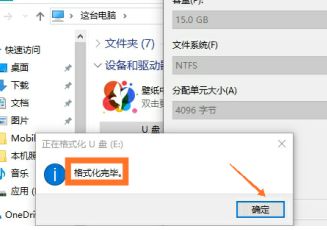 在弹出提醒中,我们可以看到格局化会断根U盘内所稀有据,所以需要保留U盘内的主要内容。