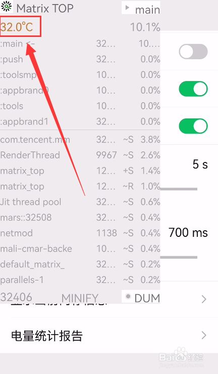 此时界面就会呈现浮窗,显示手机及时温度及各项参数。