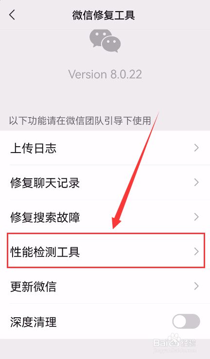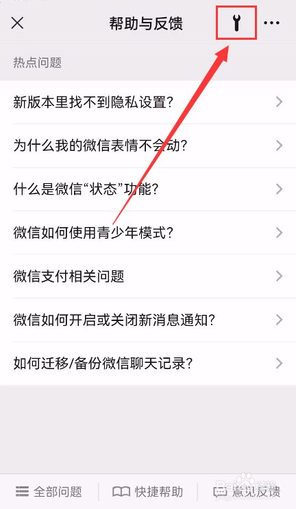 点击页面右上角的“扳手”按钮,进入微信修复东西页面。