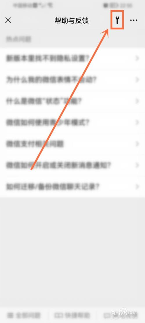 进入帮忙与反馈,点击页面右上角“小扳手”按钮。