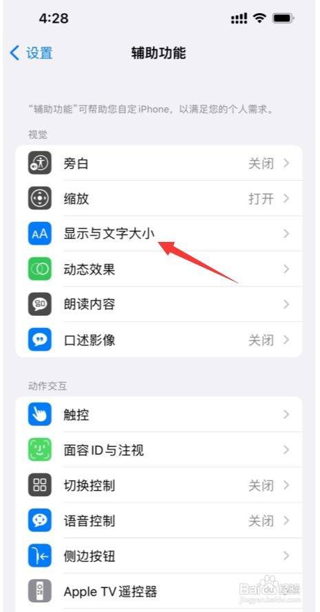 点击“显示与文字巨细”进入