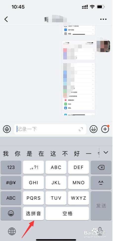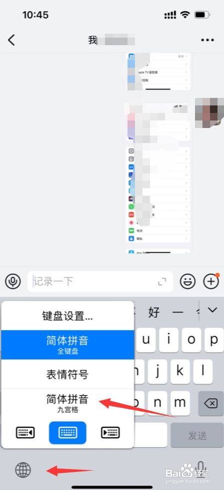 打开苹果手机输入法,点击下方的按钮,看到“简体拼音(九宫格)”