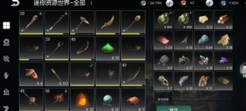 将175个石头、30个木板和75个古硬币放入建筑台背包,制造迷您资本宿世界。