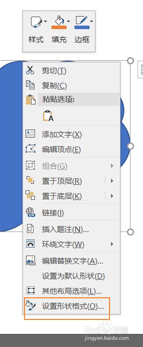 在云形上右键单击,点击设置外形格局。