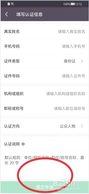输入认证需要的信息,然后点击底部【提交申请】按钮即可。