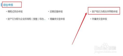继续选择综合申报,点击财富和行为税归并纳税申报。