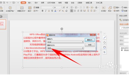 若是想要批量的替代演示文稿傍边的字体,还可以单击东西栏起头下的替代,鄙人拉菜单下选择替代字体。