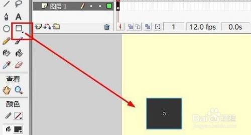 第二步,利用矩形东西在舞台上绘制一个矩形