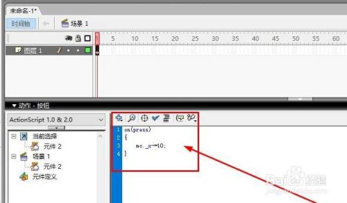 第七步,在动作面板中输入代码如图