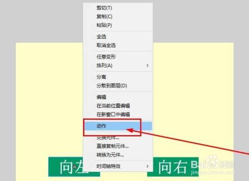第六步,鼠标单击标的目的左按钮后,右键菜单选择动作