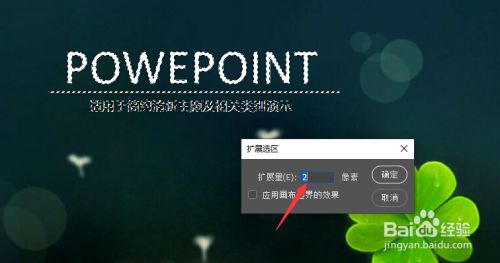 当整个文字部部门被选中之后,我们再次点击毗连菜单中的点窜扩展选区选项。并在弹出的窗口中将选区扩展二像素。